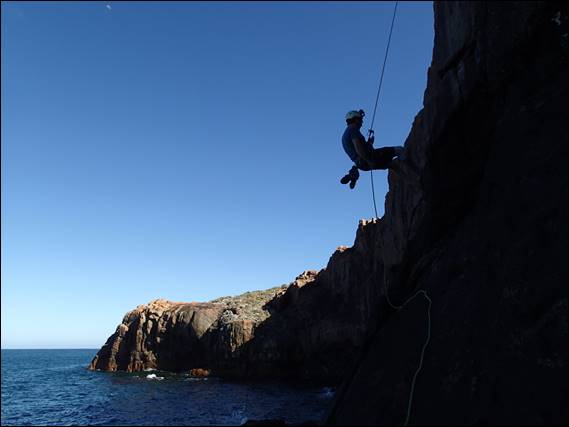 With a New Year’s resolution of quitting the smokes and beer Glen was keen to try out and see just how awful or not it would be getting up for an early climb. Word had it that the usual crags were likely to be busy, due to an organised trip by the Perth climbers so today we decided on Cosy Corner. This is the most southerly crag along the South West’s Cape Leeuwin/Naturalist coastline, and as such takes a little bit longer to get too. Glen was up and raring to go at 5 when I picked him up, and by 6:30 we were at the crag and ready to rap in: