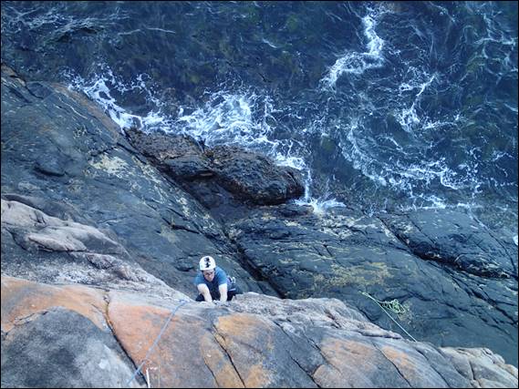 Not only had Glen not been here before, it was also his first time of leading in some time. Feeling bit rusty he was keen to ease back into the feeling that only being on the sharp end can give you. So I sent him up what would normally be the warm up climb called Bland, which it is not. Plenty of gear, good holds and fine moves which he enjoyed thoroughly. He will hopefully have some footage on his GoPro, but it was playing up a bit so we shall have to wait and see: