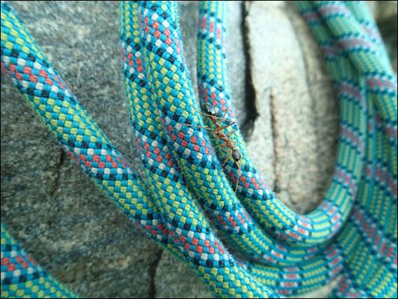 Atop the last climb we got chatting to a travelling climber, who was taking his girlfriend out on her second outdoor climbing trip. Despite his years of climbing experience and obvious ability his belay looked dodgy to us, and then he showed us his rope… the sheaf was not wearing like my trusty retired dynamic rope but was completed disintegrated in parts. The core was exposed but he showed us that it was still in good condition to make it OK to keep using for a bit longer. We were pleased to be leaving before anything untoward happened, and rest assured that trusty dynamic rope retired from leading has been permanently retired: