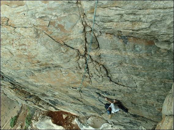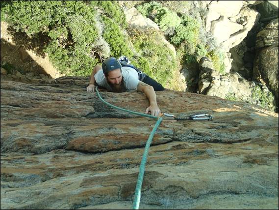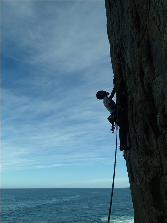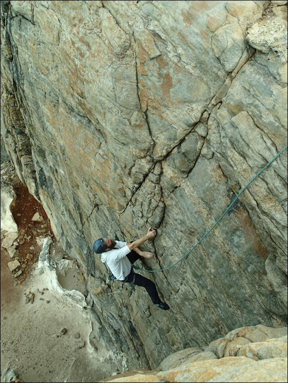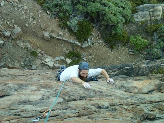 We started the morning gently a lap on Hope, which I always enjoy, carrying only a single set of wires for gear. Then Howsie jumped on Thunder Thighs, a route he had not been on before. As I belayed I had a tickle on my ankle only to find a bull ant checking me out, with two more very close by. So my attention moved from climber to biter and making sure that as I fed the rope out I didn’t inadvertently come into close contact with an angry bull ant. Soon I was following Howsie up this very fine route, as I contemplated my next route: