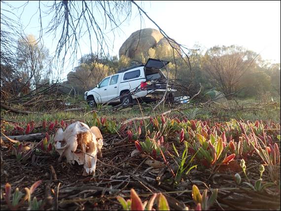 From atop the rock the view was really stunning, being late in winter the area had greened up. Crops where in the fields, grass was in the camp area and below the scrubby trees patches of pink paper daisies could be seen. In the morning they didn’t seem so pronounced but as the day warmed up and sun encouraged them to open up and set the ground ablaze with colour. While I have seen this sight several time before, this time it was really special with a rich blend of colours. Worth sitting on top for and putting up with the wind that continued to batter us: