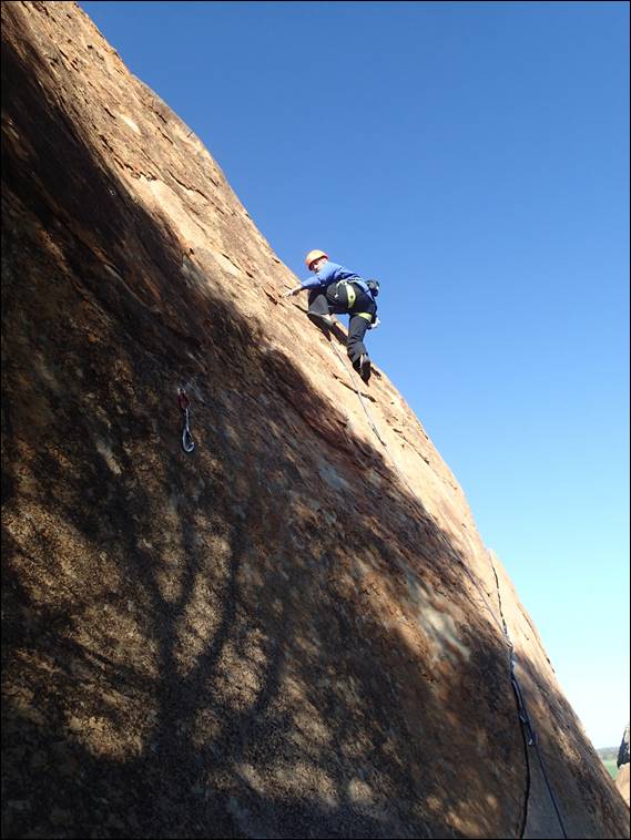 We started on the easier lines and also on the sunny side. The images make this morning look like a wonderfully sunny and warm star t to the day. Looks can however be very deceptive, and the only saving grace being that the rock wasn’t completely cold due to a week or more of sunshine having warmed it up from the inside. I’d taken my really warm hat and it followed me up every climb that day, and took the place of my helmet as soon as I was safe. On top of the granite domes there was no protection from the bracing wind: