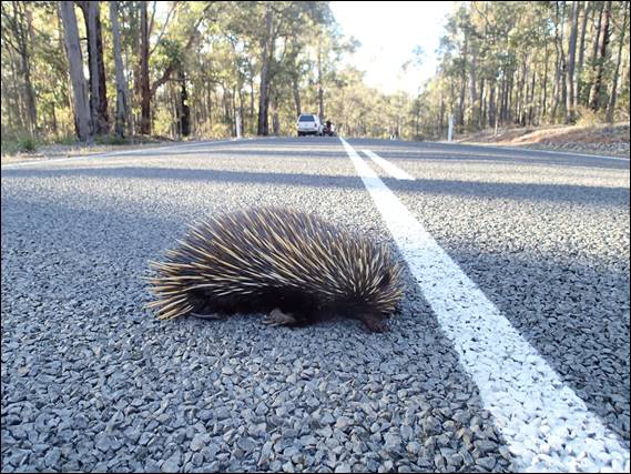 By the time I’d picked Steve up from his new digs and drove to the National Park it was a clear sky with only a hint of clouds about. The forecast was for a good morning, rain threatening after midday. Welly Dam offers great access and with fully equipped routes you can knock a heap off pretty quickly, if you have the stamina. So with no need to rush, we took our time and even stopped to move this unfortunate Echidna, which had fallen foul to some inattentive driver, off the road. I’m not sure how they couldn’t have seen the poor creature: