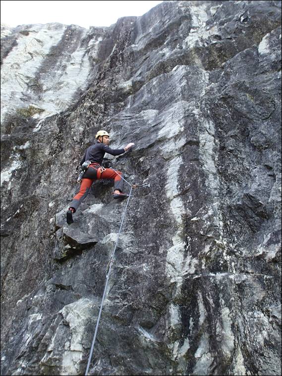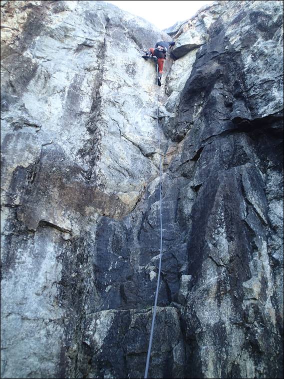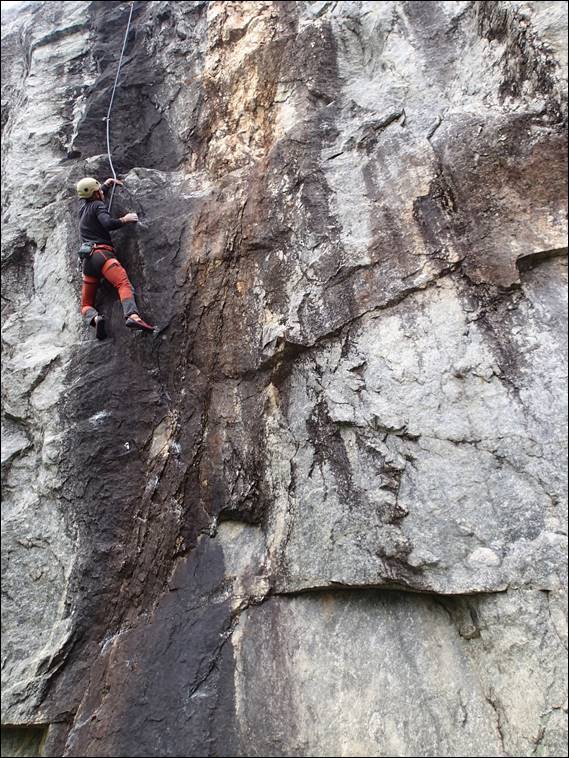 He climbed Old School and seeing we were there I climbed B Young. Topping out I thought we were done for the day, some great routes and we had finished on an even number. But I got it wrong, as Marion rightly pointed out, so after making doubly sure of the tally it was time for one more route. And, independently of each other, both Mario and Steve suggested Ebonie Road was the one to finish on. One for me to lead as Mario was getting really tired now, although you would never have guessed it with how he cruised up that last line:
