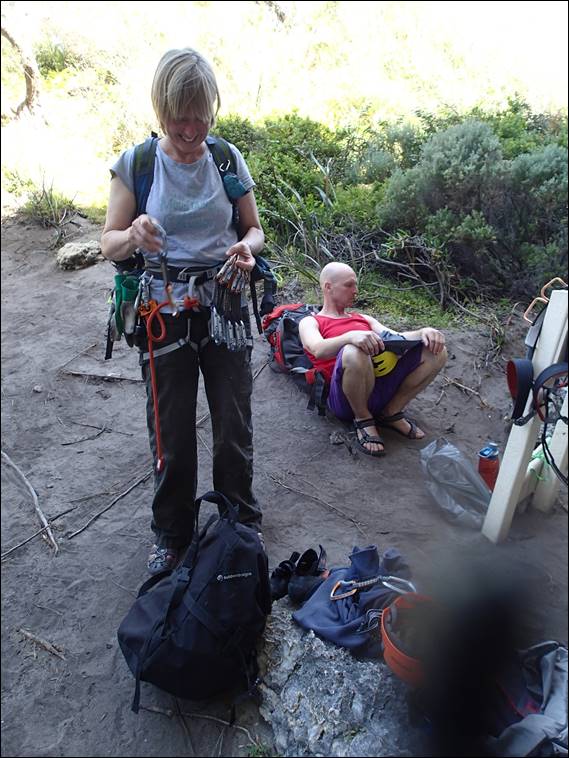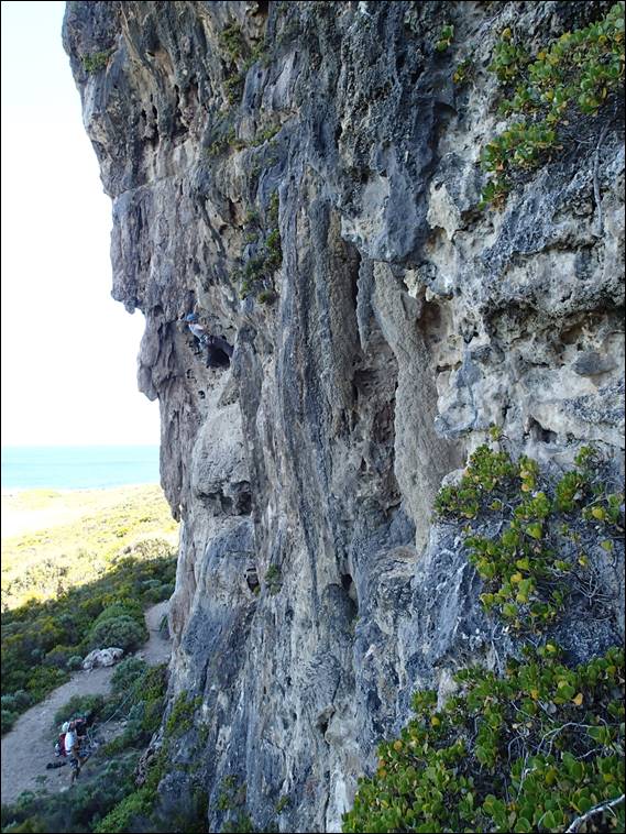 I spent a long time hanging about watching the snake weave about in the small bush, trying not to be to invasive and scare him. Eventually I left him alone and pulled up to the anchors and came back down. Steve had also finished his line by then, so we swapped over. Rongy not having climbed Juggernaut before pulled the rope and led it, while I led and then decided I should down climb Lovers Nuts. We knew that we were coming to the end of the climbing, so I wanted to make the most of the opportunity to work myself: