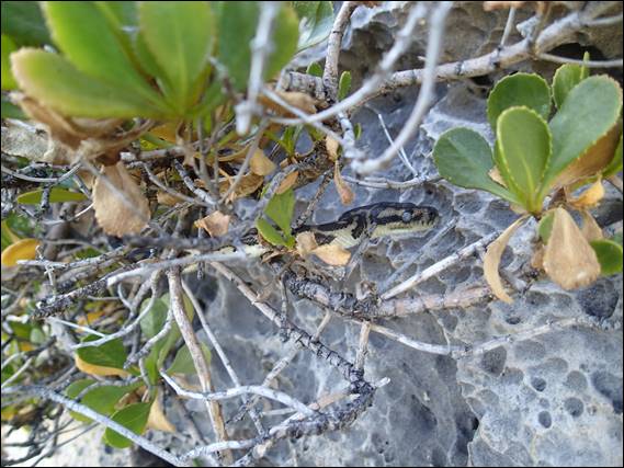 Steve was OK for belaying so we encouraged Jules to jump on the route we had just finished. We both felt it was a good climb for her, being less steep and more technical climbing. Rongy meanwhile picked off the obvious route for the day, going in search of snakes. I was pleased to see he was starting to feel it, as he rested on the bigger holds to shake out to get rid of the pump that the lower section of this route is sure to provide most climbers. The route didn’t disappoint on the snake front with a baby Carpet Python in a pocket near the belay anchors: