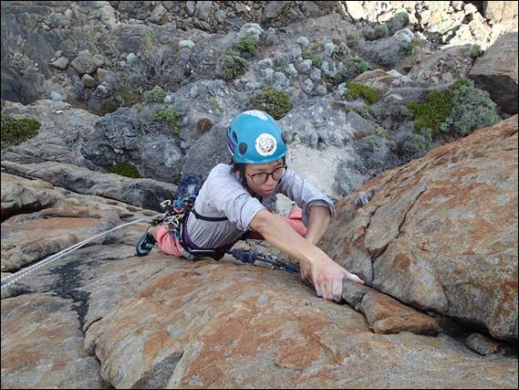 Craig certainly enjoyed himself following up on that one. Once on top he did a quick time check. He had to be back by midday to pick his boys up, so was on a time limit. He reckoned there would be enough time for one my route, so we jumped on the rap line to go down. I however held things up and hung there for some time as Jo Lee was enjoying the so call “corner” of Silver. It is in fact a steep hanging flake, which is what the editor of the guide had described it as. No matter she looked to be very focused and, in that strange way climbers do, enjoying it: