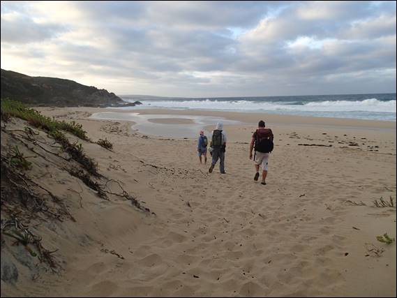 The conditions were not ideal, a 4m swell with moderate westerlies. The sky was overcast and the waves were crashing messily to shore. Large amounts of saltwater spray were being carried by the wind directly at us. You could taste the salt when you licked your lips and could only imagine what it would do to our gear if left on it long enough. Some of our rock along the south west coast gets hopelessly slippery in these conditions. However, the granite at Rumpoles is that bit coarser that the main area of Moses Rocks and so we pressed onwards: