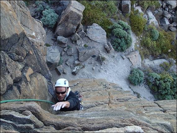 The second pitch goes at grade 14, and is a sustained and very fine corner. Before Steve had left us to go fishing he had handed Craig a set of wires that he believed really needed to be used today. He had a similar fascination with these wires at Welly Dam last weekend. So Craig, aiming to satisfy, used the all of these wires on his lead. They have a strange curved shape that almost makes them lock in like a camming device. While Craig did place everyone he later claimed to not have trusted most of those replacements, sorry Steve: