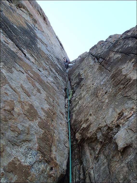 Howsie had decided on two routes he wanted to tick, Simply Suicide was the first. He had considered Pascals Route, one we had climbed together a while back. He had gassed out on that route back then, and hadn’t managed to lead it clean. The reason for going for Simply Suicide was that while it has moves just as hard, it is not as sustained. There are however bigger runouts so requires a calm and collected approach. He ate up the bottom wall and was soon at the ledge, which is about one third of the way up. This meant that the first crux had been completed successfully: