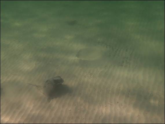 Not surprisingly it was off, I didn’t even bother to try and keep up with it. Instead checked out where it had been “sitting” upright, but found no obvious signs as to what it was doing. Eagle Rays like many rays have venomous barbs, but that is not why I didn’t follow after it. The main reason was that they are very fast swimmers and it would have left me for dust. They have even been known to jump out of the water. While the reason for jumping is not fully understood, there are some theories such as getting rid of parasites and females avoiding interested packs of males: