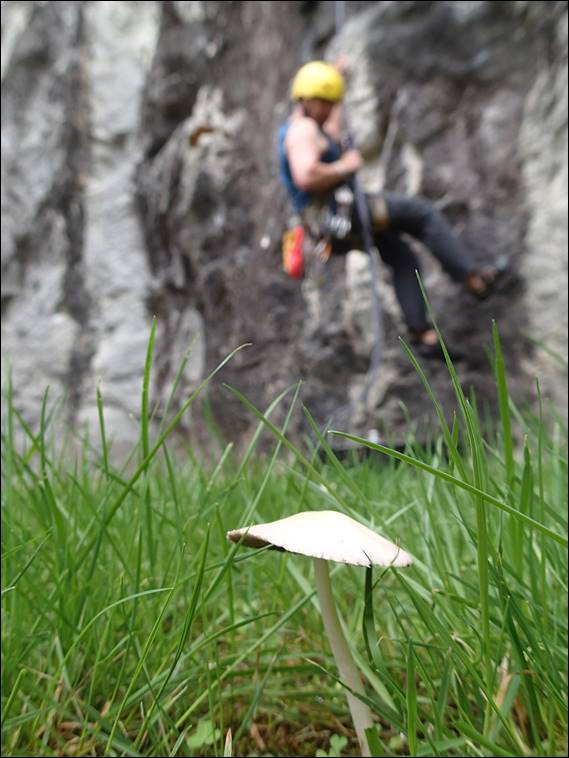 Steve was done but offered to belay me for a route or two if I wanted, so I took him up on the offer and scooted up Ebonie Road. At the top I pondered that this was route number five, but I didn’t fancy leading another line. So I decided to down climb it, not with a top rope but reversing the lead. It proved trickier than the ascent and I had to rest on one section, and I’d be interested to know if anyone can guess which section. It was a great morning out and hopefully Steve can get out one more time before his operation: