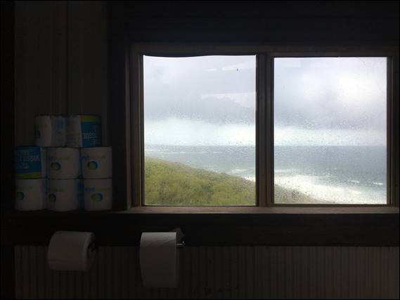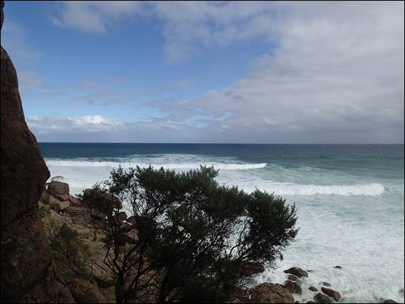 The forecast was a mixed bag with fresh south westerlies, the chance of a light shower and a rough to very rough sea. Whichever way you looked at it that it meant wetness in some form, whether from the sky or the spray from the ocean. I was however not worried about that as the conditions offered a great atmosphere in which to empty the mind and just live in the moment and enjoy the setting. It rained as I drove down but brightened up as I walked in, clouds were however dark, ominous and moving relatively fast towards the coast. I sheltered briefly in the toilet admiring the secret stash of gold: