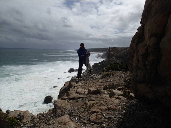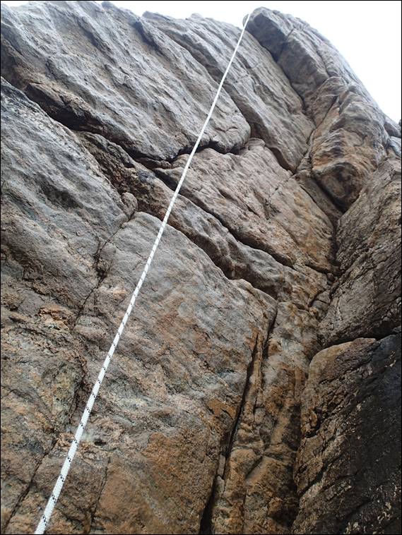 I couldn’t blame the rock conditions, the gneiss here is quick to dry and with a south westerly and clearing sky you couldn’t ask for better conditions. I was a little surprised that I wasn’t been hit by salt spray, but was certainly not complaining about that. The time had come to move the line to a new section of the crag. While I had a plan in my mind I changed it at the last minute and decided to try another project of mine. This is one that I tried ground up with Andrew and failed. It’s a little contrived but still fun, and today it felt pretty easy. I’m a little confused as to why I hadn’t got it last time: