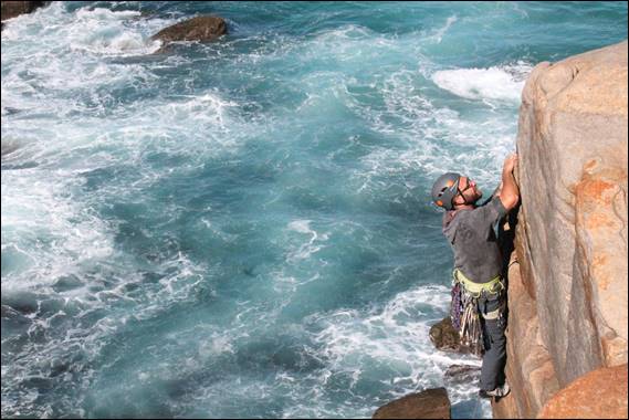 He recalls better than I the first time we hit real rock together, something he had not previously done in a recreational capacity. He was quick to get hooked, as most were that I write about, and particularly loved the aspect of placing protection. Like me the mechanical side of how gear works and placing good protection is not only intriguing but an art. The image above is of his first lead on trad in November 2009. From that time on he never looked back and pulled out some great leads. It is impressive to now think that just four months after his first lead he joined us for our South Coast trip and went lead for lead: