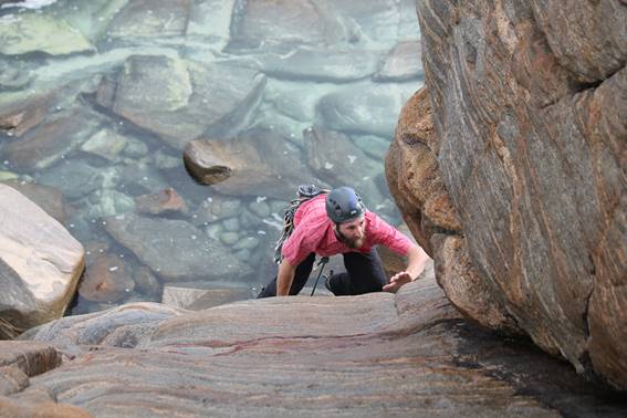 One thing I’m used to is looking down from the first few metres of a route and seeing the absence of a belayer… a quick glance to the nearest vantage point and there you’ll find him happily snapping away with his camera. Better yet, he may even rig up complex systems so that he can safely belay you from said vantage point!
