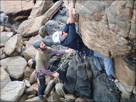 This time Howsie managed to get up, it was however not clean ascent. He fell on his gear, then rested on his gear, then fell and then rested but eventually worked out a sequence that got him up. Seeing he got up Craig and I took advantage of the rope above and both jumped on the line. What a cracker! We both got up, certainly not in great style but we had managed it. Loaded with lots of ideas and suggestions we piled them onto Howsie as to what he could do on his next attempt, in truth this probably only confused him even more:
