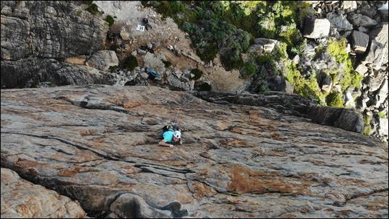 Rhys brought the drone in closer for one last image before that too was brought back down with close to exhausted batteries. We were preparing for the last scramble down, only then to have to walk back up; um when I say it like that you can understand when people ask “why?”. Before we headed down Aaron and the rest of the crew rocked up, to climb with Pascal. During a chat I discovered that he had moved to Peppy Beach six months back and lived just down the road from us. It really is a small world: