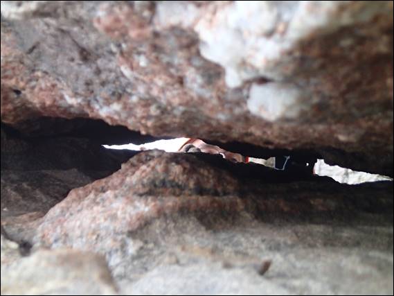 Leanne had given it a go but found the first wall, which Steve was shown climbing up a couple of images above, too difficult. It has been a several years since Leanne has climbed, and her arms and muscles just were not accustomed enough to this vertical activity. That said I also feel that when this route was originally climbed, back in the early seventies, they would not have climbed the initial wall. Instead going up the gully to the right to get established in the crack system. Back on the deck we found Alan well and truly getting stuck into the crack which turns into a fun wide chimney at mid-height: