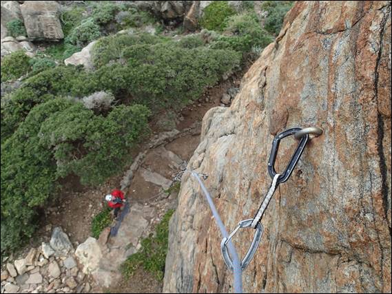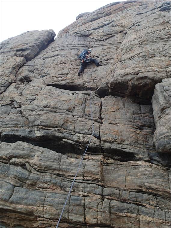 Back down and I had two routes in mind. I wasn’t however sure if the dry feeling rock might have been making me think a little silly. So I put them both to Rongy and let him decided, and that he did we me then tackling the nice long 30m pitch of Simple Suicide on the mighty Steel Wall. With only two bolts protecting the upper wall, this route always feels very run out and is aptly named. To put things into perspective, all the other routes up this wall have anywhere from three to six bolts. Putting that to the back of my mind I relished the dry grippy rock, small crimpy holds and got down to business: