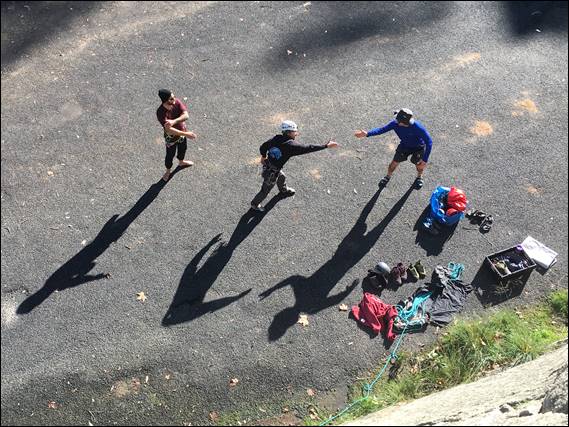 Steve decided that he too wanted to enjoy a bit of rock in the sun, and Andrew and Mark were quick to say they liked the idea. So they set off back into the light in search of The Crack, which would allow Steve to play with his tricams. Rongy and I stayed in the shadows, while in the background we could hear the cowbell sound as Steve’s gear jangled about on his harness. It getting close to midday and there were now lots of people milling about. Not really surprising as it is the school holidays and it was a glorious sunny day to be outside. Most of the tourists were not watching Steve in the sun, but Rongy who was completely oblivious to all this attention: