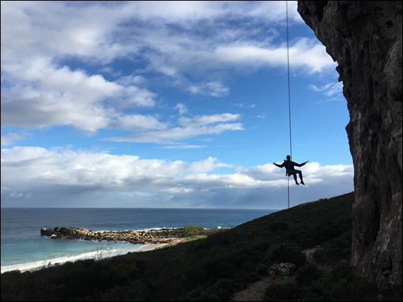 So it was that I climbed Unknown. One of the lesser climbed routes of the place and one that is a bit of a mental challenge for me, due to a gnarly last few sequences to get up and over a huge cave. That sequence always puts me on edge and when you get nervous you tend to over grip and waste valuable energy making things seem so much harder than they are. Today’s ascent was no different, in fact it was worse. The route finding was not immediately obvious and a couple of times I deviated off line and yo-yoing on these steep lines is not advisable. I managed a clean ascent but was so pumped that it hurt, and as Craig lowered me back down it was a very slow descent and I was spinning round as the rope untwisted: