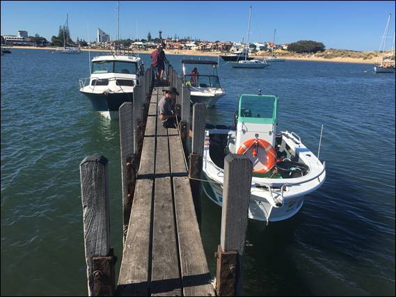 After sorting the gear and preparing the boat, we were off. A short 15-20min journey and we were at our destination, not that you could tell anything from looking in the water. Above you can just make out Bunbury, as we anchored off a reef that was in water no deeper than 15m. With a borrowed 5mm wetsuit and scuba gear I rolled off the side of the boat for my first dive in 19 years, almost to the day. My last dive was with Lisa on boxing day 2001, over in Queensland on the Great Barrier Reef: