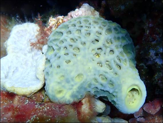 The reef was similar to that off my local beach, but in deeper water. We hunted under shelfs and in small caves but nothing else was to be found in them. The reef was however littered with sponges, corals and sea squirts. The se squirts in particular caught my eye and was found in colours that I don’t see off my local beach. I’ve had a bash at trying to identify them but it seems an impossible task. So for a brief moment I’m going to stop typing and allow you to enjoy the following three images: