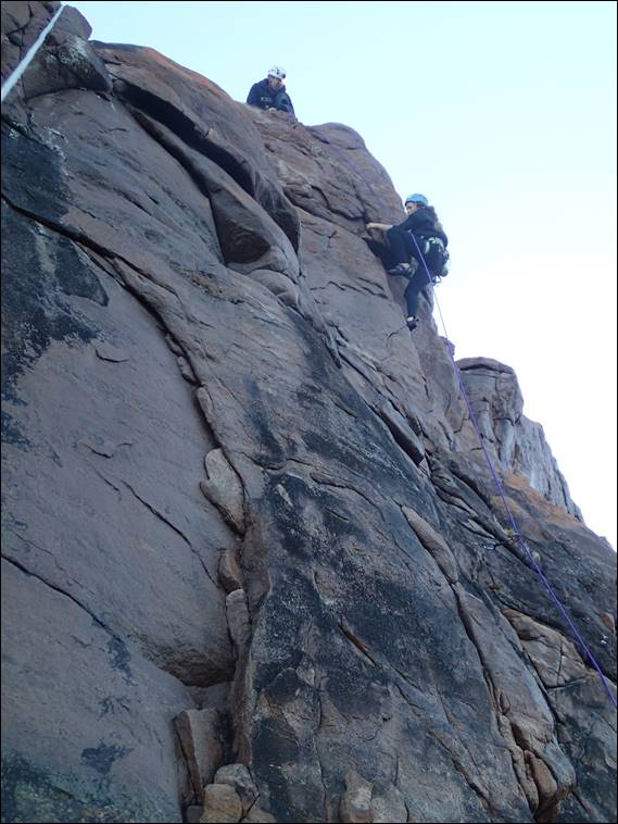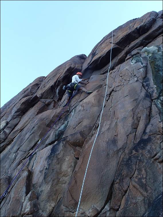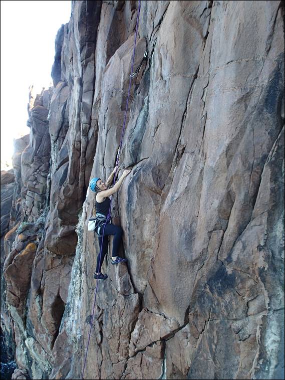 Indecision, was probably a good name for this route when I established it, as it does allow for a few varied approaches before headwall. Rongy’s choice was less technical than stepping left and climbing up the face but it was equally good fun. While it looked powerful, by using good layback techniques it yielded reasonably easy. And despite Jaime’s concerns she romped through it, yes we did manage to convince her to have a go. This flake was also a great prelude to the final layback crack up the headwall, which we were advised had sapped most of the last enthusiasm her arms could muster for steep routes: