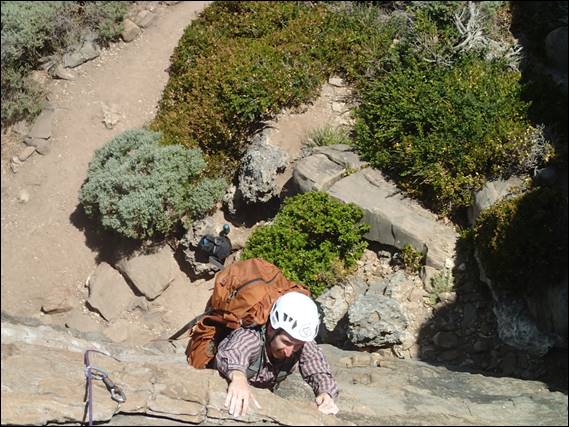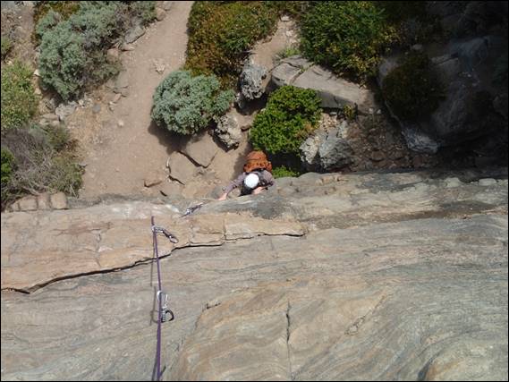 I’m happy to report both of his cams were well placed and I was confident they would hold a fall, so much so that I fell on them myself to prove to him they were good. While they would always hold my fall there are two faults in both placements and I wonder who will spot them. Once on top it was time to show Ash what to consider in setting up a belay. First and foremost in case the second falls have bomber gear, keep the system tensioned and make sure it is directional. Secondly but for me equally important are to make sure it is a comfortable belay stance and that whenever possible you can see the person following you up: