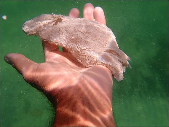 Drop it did and the water went pancake, with only ripples hitting the beach. With optimism I went in only to be greeted by a pea soup visibility. Not a huge surprise, as it needs time for the sediment and weed to settle out. Seeing I was in the water I went for a look anyway. My only find of note being two spawn masses from the Giant Troubridge Head-shield Slug, a slug that feeds on other burrowing slugs and eats them whole. How do I know this you may ask, well I came across the same sack like discovery off Higgins Cut a few weeks back and managed to get it identified on QuestaGame: