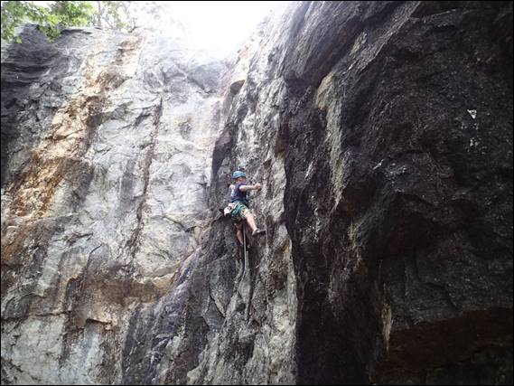 With that he decided to not climb anymore, which was probably very sensible and I do hope that he wasn’t put off this wonderful pastime by having had his first experience at the very intimidating and extremely unforgiving Welly Dam. While it may sound like I’m not selling the place, these are the words that many use on their first visit here. You however need to immerse yourself in the place several times before you start to realise just how great it is. The three of us carried on but before we returned to the unfinished business on the big walls I lead B Young, allowing Howsie and Mikey to get used to small fingertip holds again: