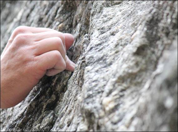 As can be seen above Mikey tried again, and again, and again. I’ve included a quick video clip of one of his attempts, in which he make a remark that could be said about so many of the holds on this route… just before he takes yet another fall. To give you an idea the hold he is talking about is worse than the one shown in the image below, which again is from this route. His persistence was admirable and finally, I’m pleased to say, it paid off. Neither of them had anything left in the tank for more climbing, so having watched the boys on this route for so long I couldn’t resist and had to jump on it one more time before we packed up and headed home: