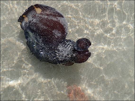 Yesterday, having been two weeks since I have had any new underwater discoveries I was keen to get out. The weekend also happened to be a three day one with Monday being a public holiday. The swell had been lower all week so I was hopeful and even better it was looking flat when I wandered down in the morning. I noticed a dark shape bobbing about just off shore, which was a dead Sea Hare. I’ve only once come across one of these alive, unfortunately I don’t have the images from that dive in a post to show you but they are very graceful creatures: