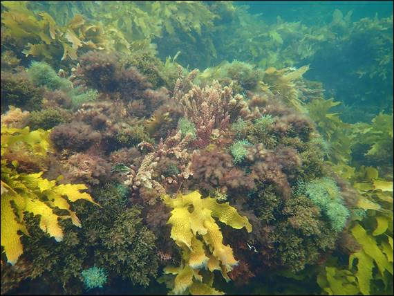 All a sign of the changing seasons, and indeed today was the first day of Autumn. The water also felt chilly when we went in, at least Geoff and I felt so. The others may not have through so as Nana trying out her new wetsuit, covered head to toe, while Ben looked like a pro all decked out. As the images above show the visibility, despite the clouds wasn’t too bad. Close to shore it was murky and grim, but further out it cleared up and there was lots to see. Again mostly the usual suspects of rays, sea stars, sand gobblers, fish and a stunning array of weeds that looked like a floral garden: