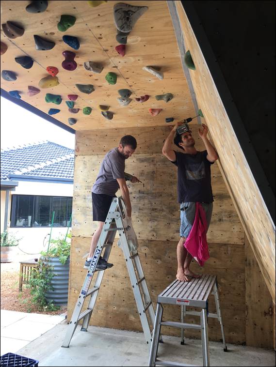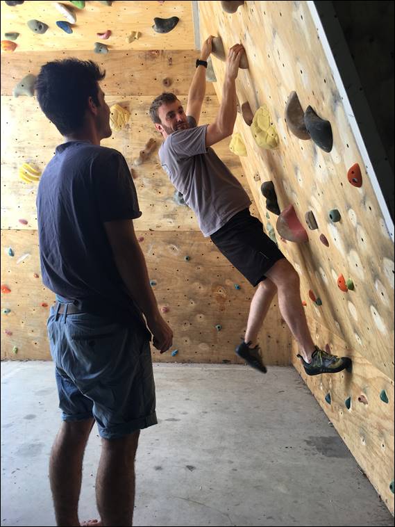 We had noticed before how a few of the early routes had become a little trickier after bigger holds had got in the way. This had resulted in recurring bash elbows and knees, but we never moved them. So with the advantage of resetting all the holds in one hit we then put back the bigger holds, which allowed us to also set a few routes. When I posted an image or two of progress Rongy, Craig and Jake were probably getting nervous that there wasn’t much left for them to do the next day. But their needn’t have worried: