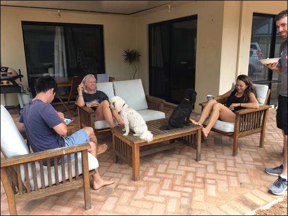 It wasn’t all work, work, work although when we were in the shed I was a pretty ruthless task master. I’m not one to dilly-dally on a job that needs completing, so can become a little driven. However, today we did have a morning tea break. Lisa had kindly stopped at the shops the day before and brought Easter goodies to feed the crew that had offered to help me out. Today however we indulged in Jaime’s amazing sticky date pudding. The poodles tried but failed in getting a taste, which is probably a good thing: