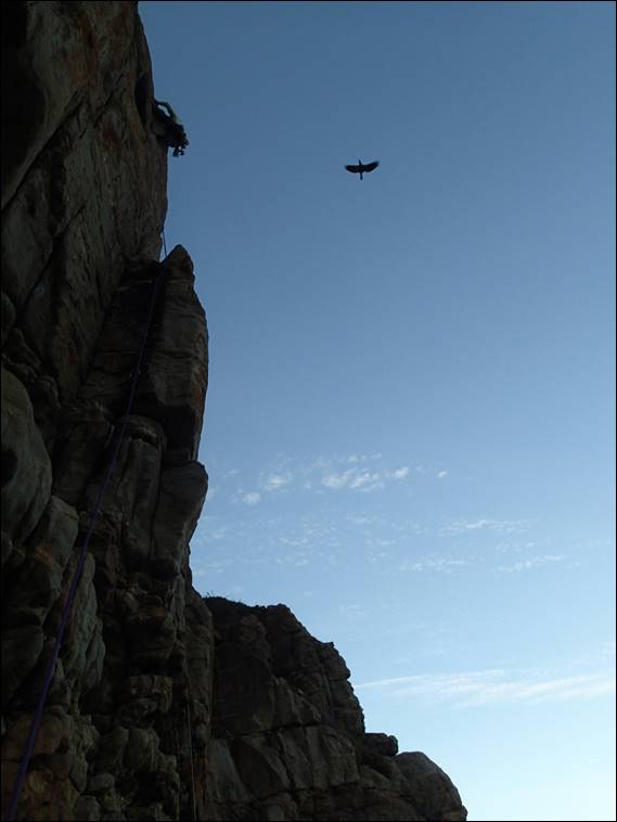 He did however like the look of Power Your Mind. Without the great ocean views I kept a watchful eye for anything unusual, of course while also diligently holding the rope. It may not seem all that exciting I did spot the above fly, one that I have ever seen before. It’s a Snail Parasitic Blowfly, and as the name suggests their larvae are known to be parasites to snails. As I observed the butterflies and flies, Howsie had already made his decision. Halfway up and after looking at the steep blank wall of Power Your Mind, like me 9 years before almost to the day, he decided that the natural line to the left was more appealing:
