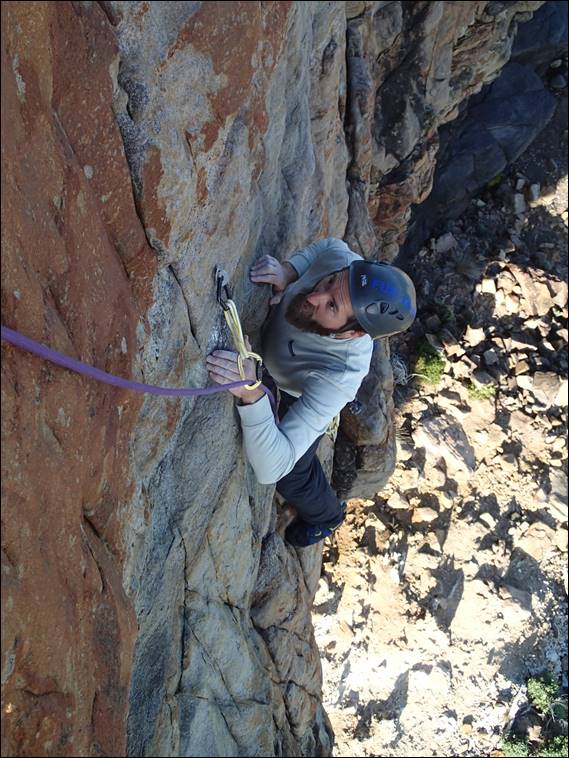 Despite feeling completed gassed and having battled for over half an hour on the route Howsie was sporting an ear to ear grin. Not surprising, while we hadn’t seen any dolphins he was rewarded with having got up Bearded Dolphin, which after all the climbing we had already done was a great achievement. We were not however quite done. It seemed rude to come here and not climb Banana Split, one of the original routes here that is nearing 50 years old and is a classic trad line. Howsie did however make it clear that it was my lead, which I was more than happy to take: