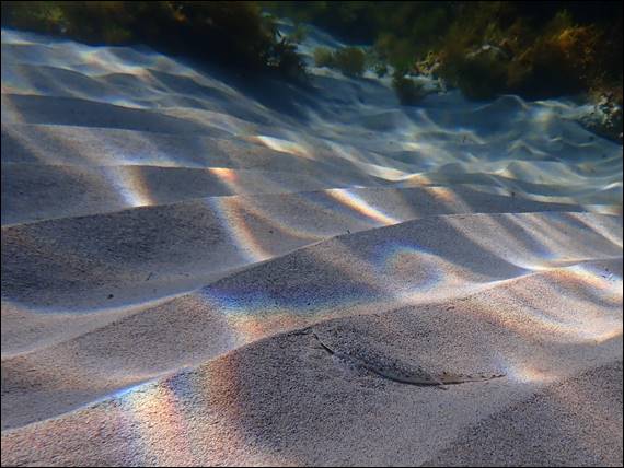Immediately I spotted an unusual looking Combe Jellyfish that looked tubular, above, and as I watched it anchovies darted in all directions. I’m not sure why but the water here seems to be so much clearer than it is at my local spots off Peppy Beach. Maybe it is because it located on the outer edge of Geographe Bay, so it doesn’t get the same swells and currents. Or maybe the coarser sand, on which a small Sand Flathead below was perfectly camouflaged, takes more turbulence to get stirred up? Whatever it is I was pleased about it today: