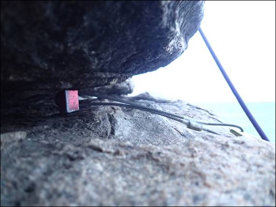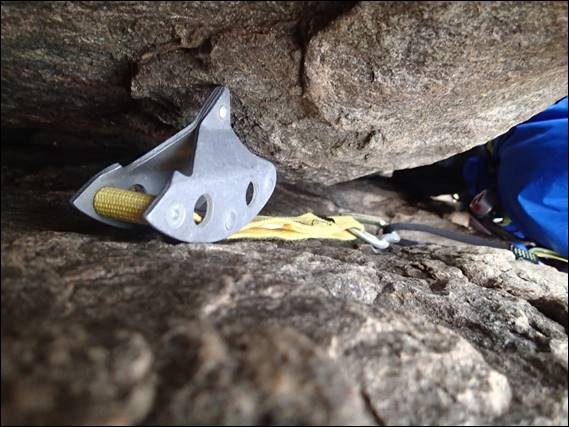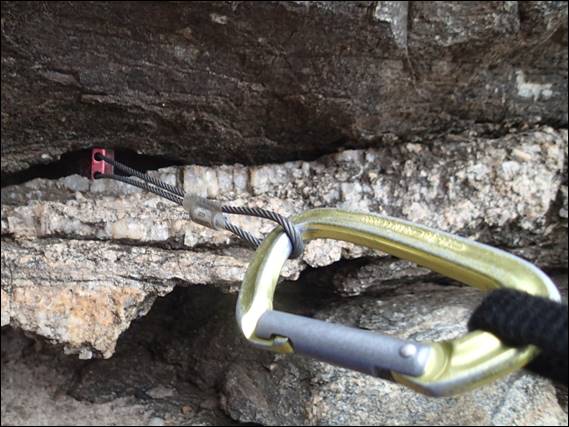 Steve then hoped I would be up for him jumping on another climb, his words I might add. Of course he was rewarded for his positive thinking and outlook, leading up a real classic on the hunt to find more fabulous hex and tricam placements. I’ve not included an image of that route, and I wonder who will have picked the line from Steve’s words. As I followed up I heard something unexpected… voices. We looked across and a small group had thrown a static line off Steel Wall, but it didn’t hit the ground and was instead blown almost horizontally sideways and landed in the gully: