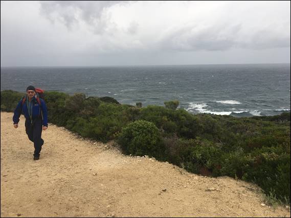 I won’t bore you with an image of every hex placement, but will say that we did indeed manage to find a worthy placement on each line. Not just some token placement that was so sketchy that we felt we had to back up. Taking the time to find not just a bomber placement, but ones that varied in nature. Then of course to marvel in its glory before taking the obligatory image, as proof of its use for Ross. All the while keeping an eye on the clouds, as we had no idea how long we had to climb and every route was a bonus. The wind was coming in from the west and the morning certainly started well, with no real storm clouds brewing out over the ocean:
