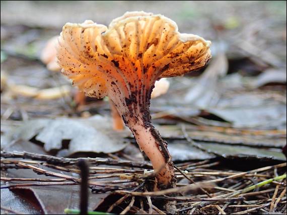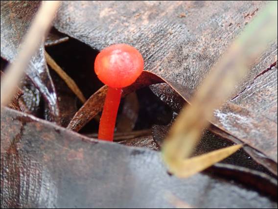 Next up above is one of several Golden Chanterelle we found, this is one of the most popular wild edible mushrooms… if I have correctly identified them. The funnel shape of the cap, distinctive bright colour and way the gills continue into the stem makes me pretty sure I am right, but we didn’t do a taste test just in case. Then there was this tiny single mushroom that like so many others I have found you would think was easy to identify, but alas I have not been able to find out anything about: