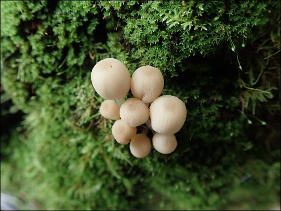 With all the rain of recent weeks it had swollen, but being the first time we had been here it was hard to appreciate that when we first came across it. We found some steps leading down to the water and sat there having a snack and another small cuppa, as we watched the water flow past. It may seem calm on the surface but there was certainly a bit of velocity in the water. At each stop I took a bit of time to look about and at this one I found a small cluster of Fairy Inkcaps. The stem and shape, pattern and texture of the cup making it a pretty safe bet: