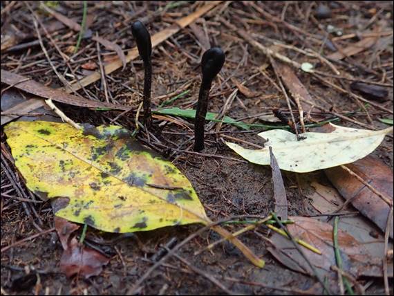 There is little point in me trying to identify the spider, but hopefully QuestaGame will help. That said I have had very little response from them on the numerous fungi I have put on the App. Luckily I do not need their help with this next one which is an Earth Tongue, it looks a bit like a couple of antenna poking out to see if it is safe for whatever lies beneath to come out. While fungi can be a sign of disease in woody plants, they are also a forest recycler and play an important role in decomposing matter to make it more available to other plants and of course some of them also provide a food source: