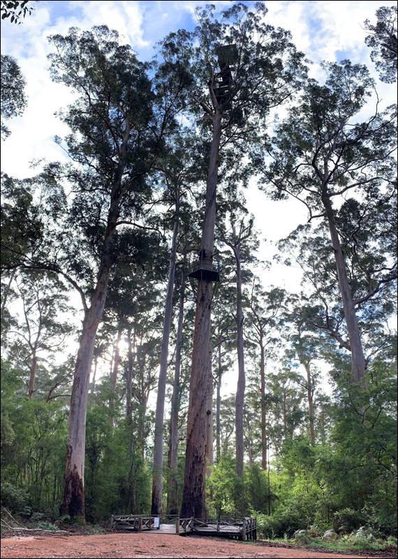 The sun started to come out as we got back where there was still a bit more to the journey for me, as I was keen to see the sight from the top of the Bicentennial tree. This used to be one of three fire trees that the public could climb, I have been up the Diamond tree but that was sadly closed in 2019 as the tree became diseased. This one however is higher at 75m whereas the Diamond tree was only 49m and a third fire tree called the Gloucester tree sits at 58m. The Diamond and Gloucester tree climbs and platforms were built in 1939 and 1947 respectively, and were used as lookout locations for fires:
