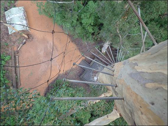 This one was built in 1988 to celebrate Australia’s bicentenary, so in some ways is more of a tourist attraction than the other two. But that said the way it is constructed is the same, metal pins driven into the trunk with a wire mesh round the outside. At times these pins become almost vertical and there are no other safety features. Needless to say Lisa, sitting way below on the bench, didn’t fancy coming up. What I find interesting is that every Tom, Dick and Harry has a go at climbing these trees with a potentially fatal fall, yet they are quick to say that rock climbers are reckless and dangerous: