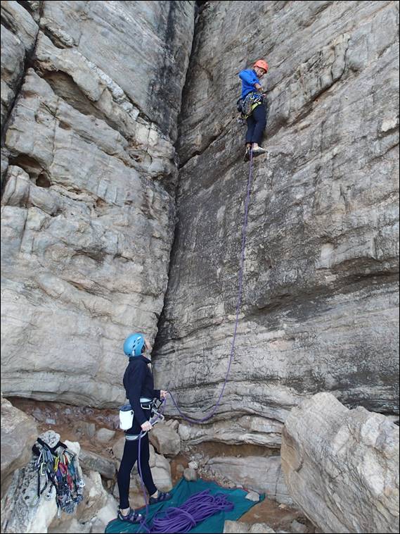 Jaime is still adamant that she will never lead. Today I was willing to accept that, as she hasn’t climbed much of late. For this reason the second line I picked was one that had two approaches. A direct thinner and more delicate route for Dan and I, and easier line just a few meters to the left for Jaime. While the image below may not be all that exciting, it is the only images with Jaime in to prove she really did join us. Dan had some technical camera operation issues, which meant he managed to miss all the amazing poses I struck before I got to the stance where I could finally clip the first carrot: