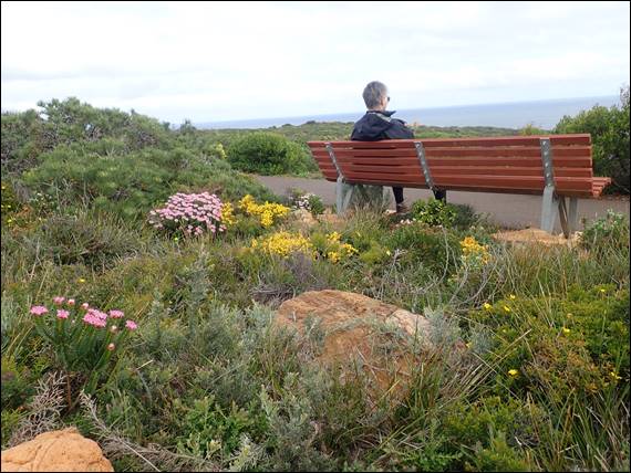 That was probably due to the long weekend being tacked onto the school holidays, so there wasn’t the mad rush when everyone has limited time to cram in their intended activities and journeys. One reason Lisa was keen to come here was that with ocean views from most parts of the walk there would be the chance to look out for whales. So, we took advantage of the numerous places to “park-your-bum” and watch the ocean. Well, Lisa did and I used these times to scour the ground looking for anything that stood out: