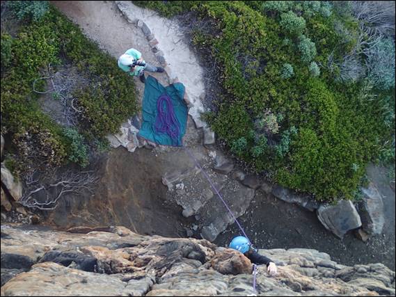 I gave Rongy the option of which ones he was keen to lead, and he kicked the day off on Gutted. I thought it was one of the original 70s routes here but am mistaken and it was put up in 93. That surprised me as it is nowhere near as hard as a grade 16 and I feel in 93 they would have been more aware of that. But the wet crack at the top added a bit of extra excitement. I then jumped on Hole World, which felt more like it with a few tricky sections to it. Rongy however, wasn’t watching as I climbed nor as Jaimie went up. He instead was behind the lens observing action elsewhere:
